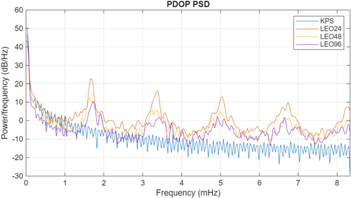Fig. 4. Power spectral density of KPS/LEO PDOP in Seoul.