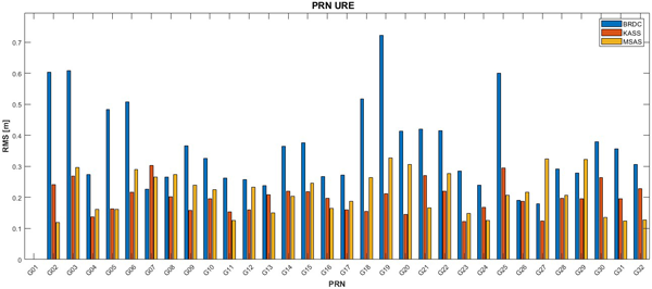 Fig. 6. Comparison of URE RMS for PRNs (April 1, 2024).